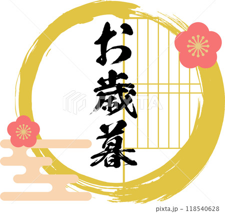 年終禮物,冬季禮物的日式框架套裝,日本矢量插圖材料,圓形和圓形標籤,日本傳統活動