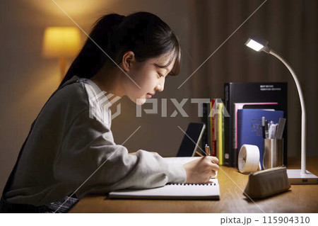 高中女生在房間裡學習入學考試