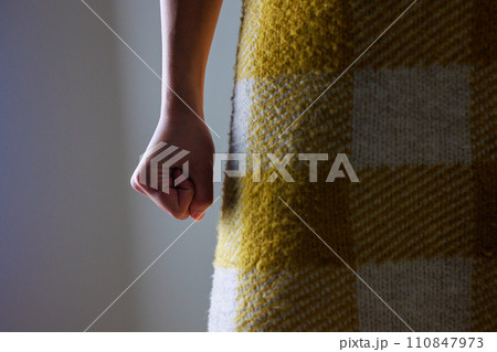 一個女人的手緊握成拳頭,黑暗的影像