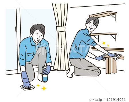 清潔工作服清潔在房間裡的多個年輕人