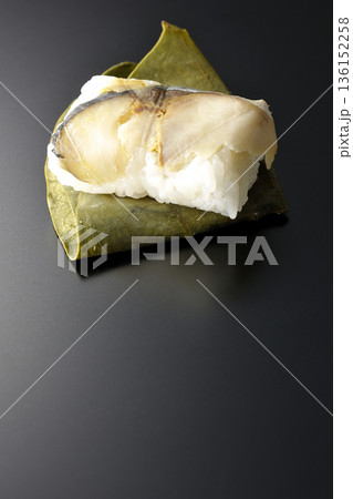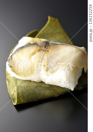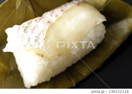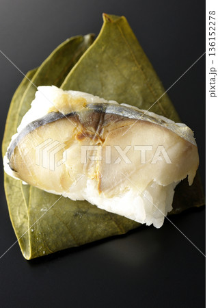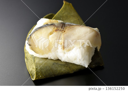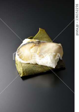 鯖魚柿葉壽司,黑色背景拍攝