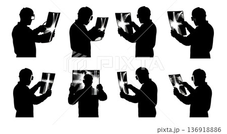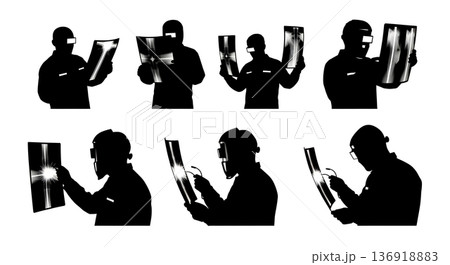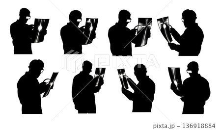Black Solid Welder NDT Inspection Silhouettes Set of Six on White Background
