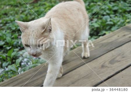 Beautiful orange devon rex cat sitting on desk in computer repair workshop, while focused technician servicing broken laptop in blurred background. Concept of cozy and quirky work environment.