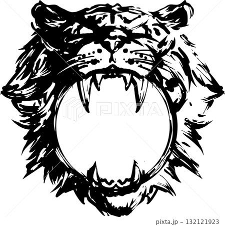 日式風格的相框設計,以動感十足的筆觸描繪了一隻老虎。