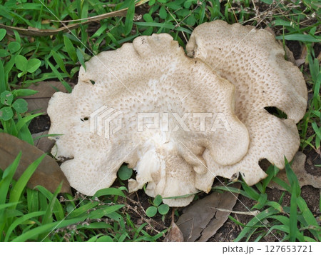 公園草地上生長的白蘑菇(Callithrix punctatus)