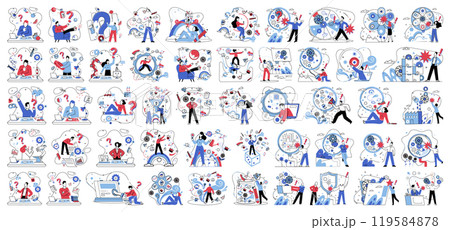 Problem solving vector illustration. Skillful management navigates ship problem solving through challenges Decision-making is compass guiding journey problem solving Brainstorming and analysis