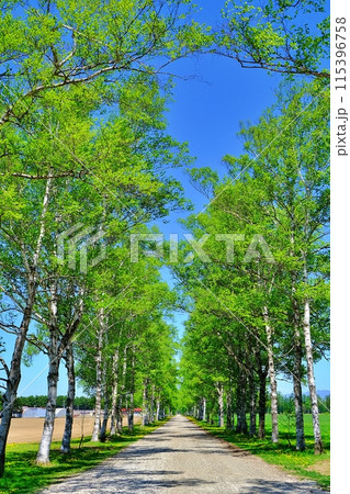北海道音色町十勝牧場白葉林蔭道