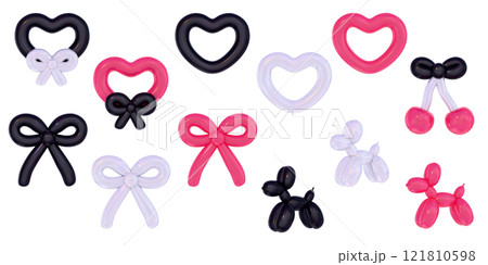 氣球藝術 3D 插圖集黑白紅色