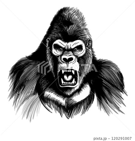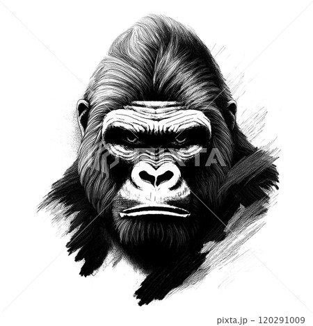 酷大猩猩臉的黑白插圖,透明背景的切口