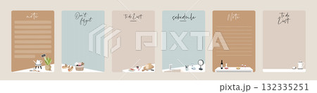 一組可愛手繪平面風格居家室內裝飾物品插圖的筆記本內頁設計圖框向量素材圖片