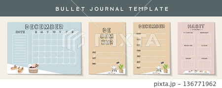 十二月空白月曆書寫樣機,手繪風格可愛主頁設計,文章簿,寫作簿,等待事項,備忘錄,日記素材