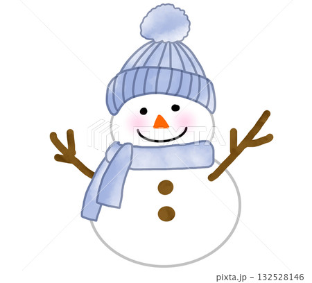 一個戴著藍色帽子和黃色圍巾的雪人的插圖