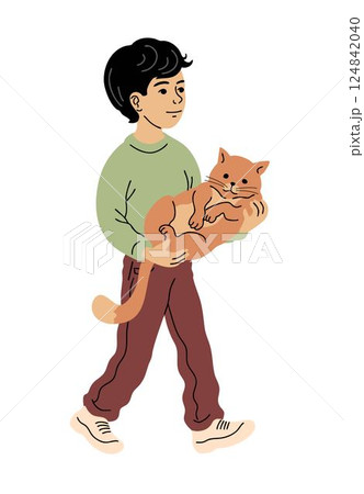 Hand Drawn Elderly play with dogs and cats illustration in doodle style