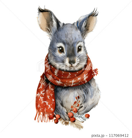 Watercolor squirrel in Christmas wear a hat and a wool scarf isolated on white background clip art element illustration. Christmas holiday concept