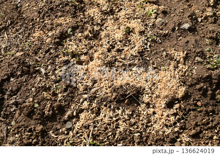 稻殼和覆蓋物散落在田野裡