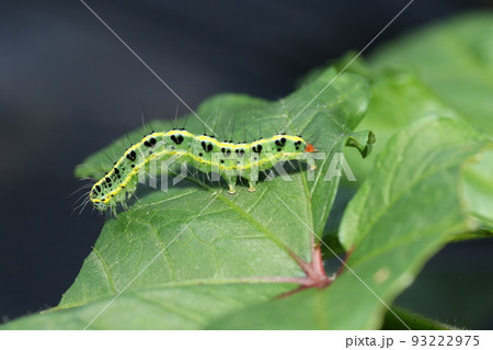 吃秋葵葉子的 futatorikoyaga 的幼蟲