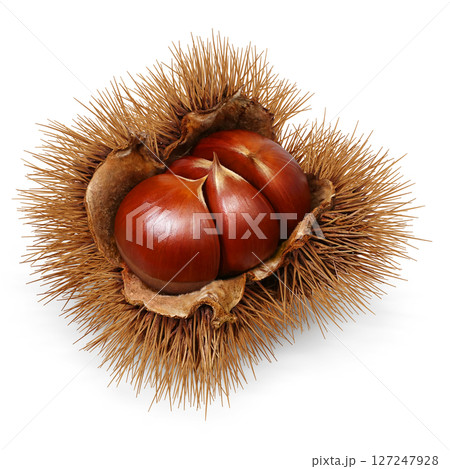 栗子插圖,逼真,栗子毛刺,白色背景