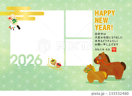 2026年新年賀卡,馬年家庭相框[2個窗口]