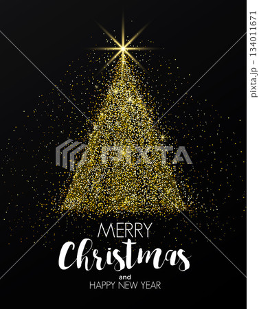 Holiday New year card- Golden Christmas tree