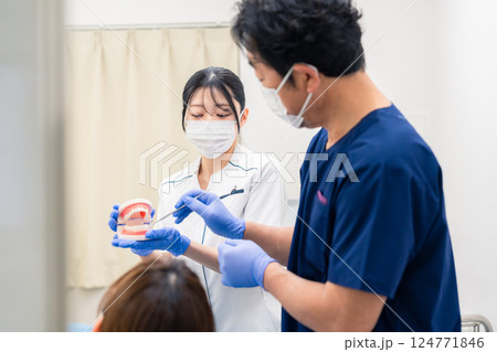 員工和女性顧客使用沙龍機器進行脫毛治療
