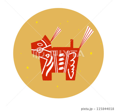 Cute horse in nature with flowers on pink background. Horse illustration in folk art style. Pop art illustration.