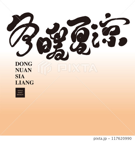 “冬暖夏涼”,四季,手寫字體,現代書法風格。
