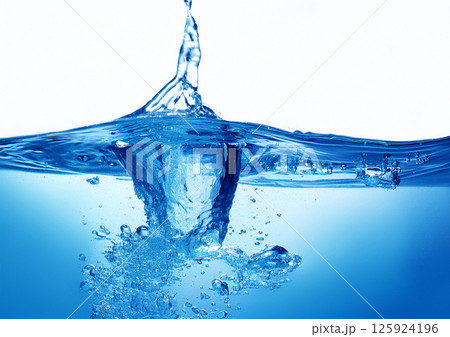 清澈的水面上的一滴水,一個物體撞擊水面,以及水柱,當水倒下時會濺起水花和氣泡。
