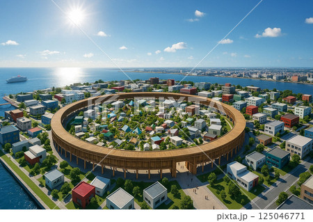 三艘豪華遊輪在日本橫濱城市景觀上空。櫻木町站、裡維埃拉、鑽石、伊莉莎白女王等景觀。