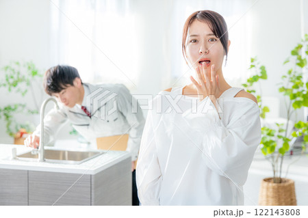 穿著工作服的男女在廚房交談(供水服務/投訴)