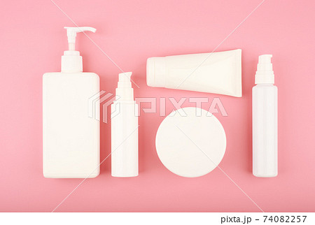 Cosmetics, fashion. Monochrome stylish composition in pink color. Top view, flat lay.