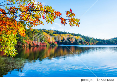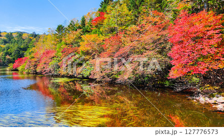 (長野縣)米子大瀑布/懸崖上的紅葉