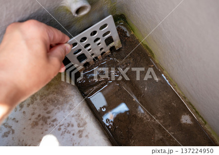 雜物堵塞了陽台的濾網,導致積水。