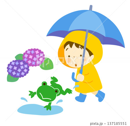 雨季與穿著和服的孩子們的插圖