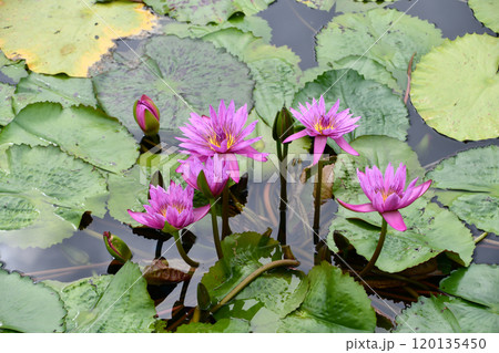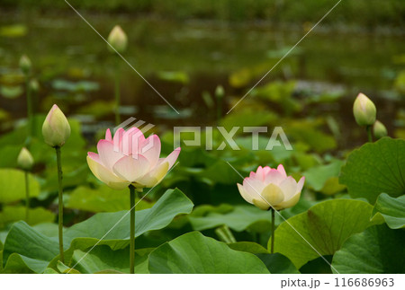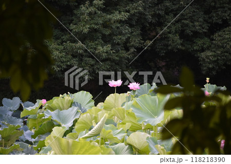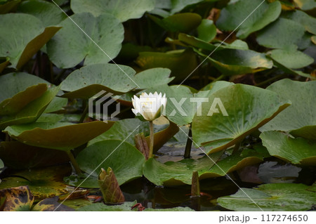 宮城縣川崎町道奧森湖濱公園池塘里盛開的睡蓮