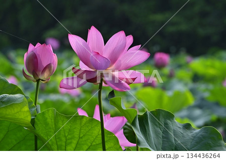 美麗的天然蓮花預示著日本夏季的開始,曝光不足