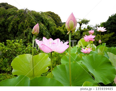 行田市古蓮花公園裡盛開著古老的蓮花