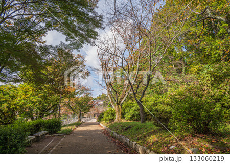 茨城縣歷史博物館 銀杏樹和黃色地毯般的道路