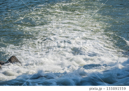 京都市伏見區,三須新井堰流出的水流湍急,匯入宇治川。