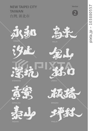 台灣新北市行政區(2),手寫書法字體,特色書法題名設計。