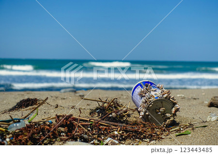 海灘上的廢棄鐵罐與海洋污染對生態的影響