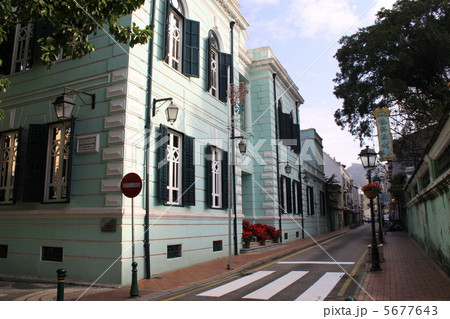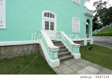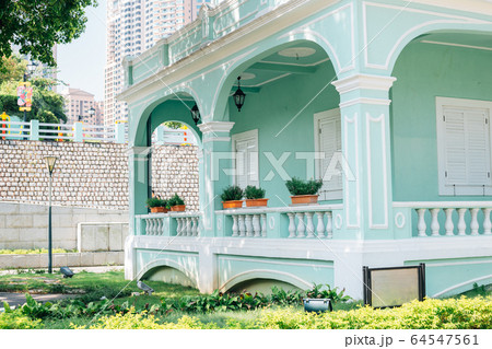 Building view of Coloane History Museum, a traditional Europe Style house at Taipa Village in Macau, China.