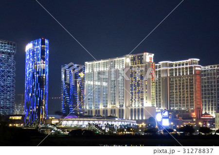 Sunset high angle view of the Macau Tower Convention and Entertainment Center and cityscape