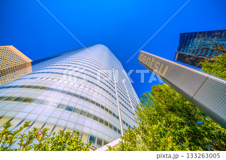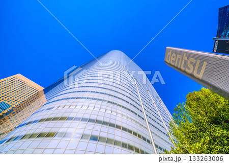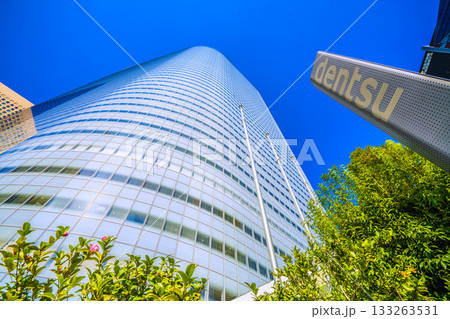 日本東京城市景觀:汐留辦公區。電通總部大樓及其他建築的景色。