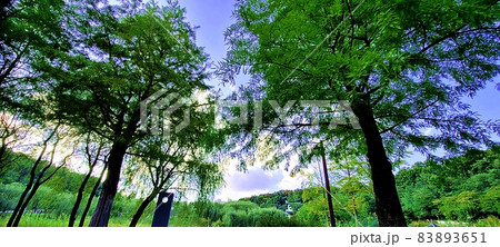秋日從首爾北部夢幻森林的草地廣場看到的晴朗天空