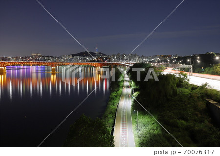 首爾北漢山杜勒吉爾附近日落時的森林剪影