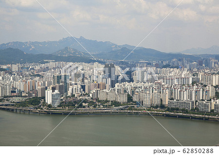 從首爾江北市中心蘇峪站十字路口看遠處天空的雲彩