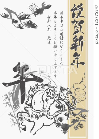 賀年卡、新年、2026、馬、馬年、馬、水墨畫、書法、水墨畫、水彩畫、日本畫、手繪、插畫素材