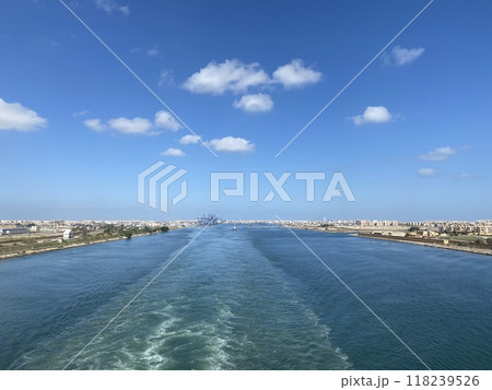 穿過港口的貨船