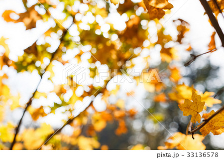 Autumn yellow leaves blurred background