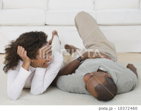 Couple smiling at each other in livingroom
